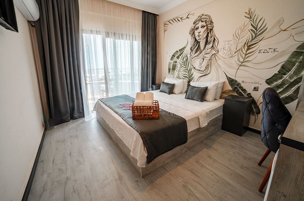 Deluxe Oda, konfor ve lüksü bir arada sunan özellikleri ile misafirlerimizin tatillerini unutulmaz kılmayı amaçlıyor. Bahçe ve deniz manzarası, huzur verici atmosferi ve özel hizmetleriyle size evinizin rahatlığını yaşatacak. Tekhan Kumkuyu Luxury Hotel'de, tatilinizi en iyi şekilde geçirmeniz için her detay düşünülmüştür.